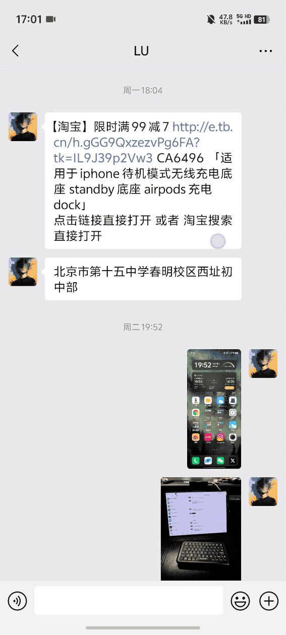 想要和它完成交换,无碍”。它也会间接提醒你能够跳转到淘宝间接打开商品。而当你的伴侣给你发了一条淘宝的采办链接后,